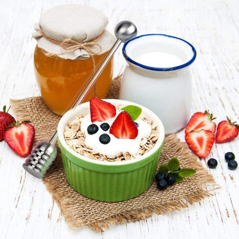 This stainless steel honey and syrup dipper stick spoons are designed to collect and drizzle viscous liquids like honey or syrup without making a mess. Key Features: · The grooves...